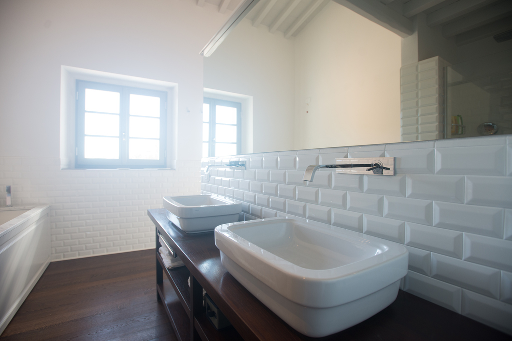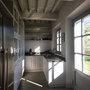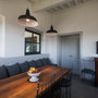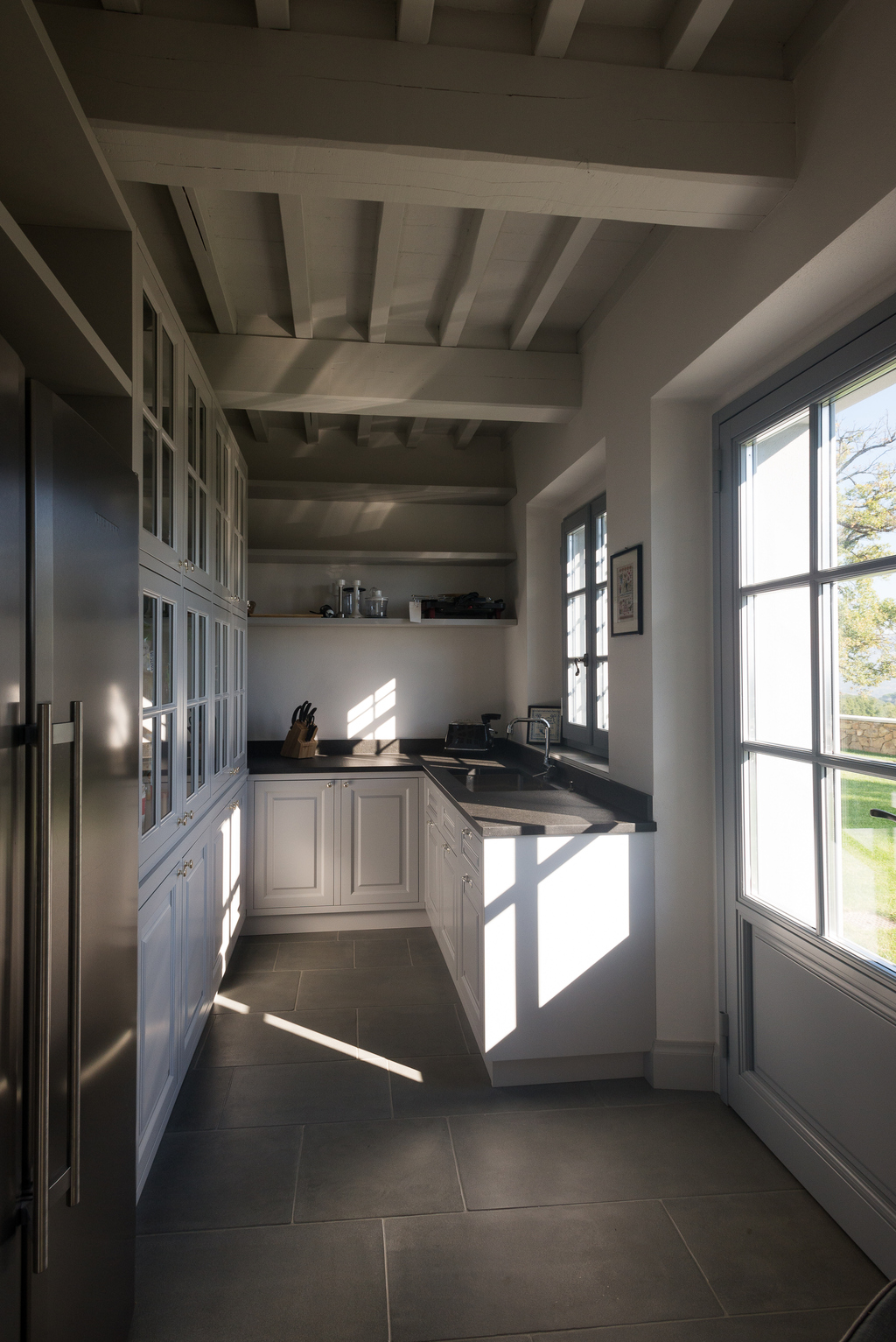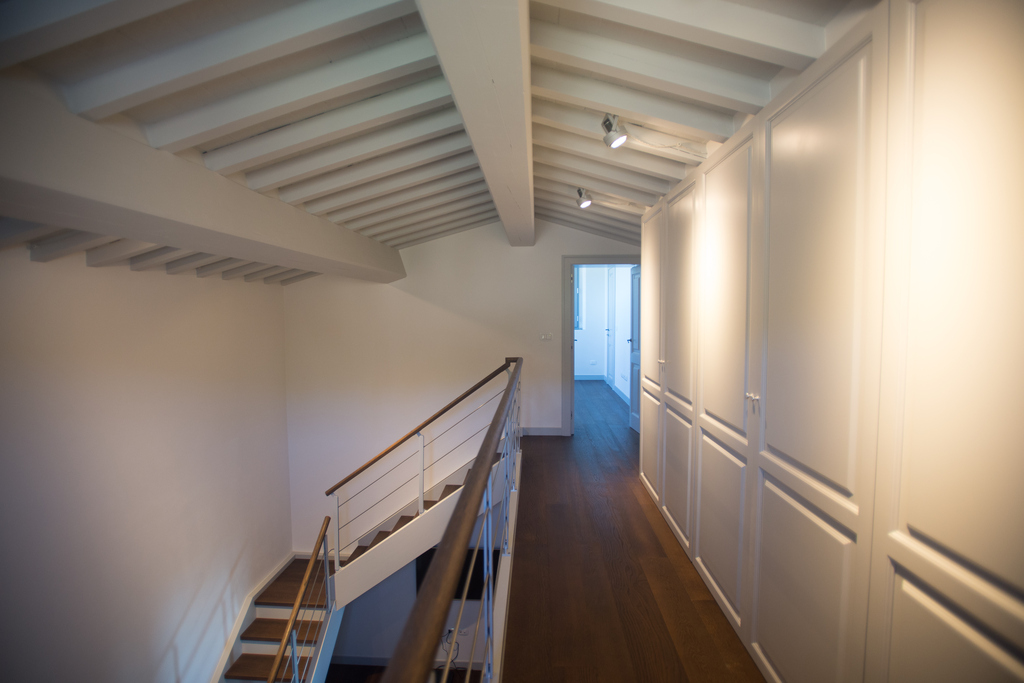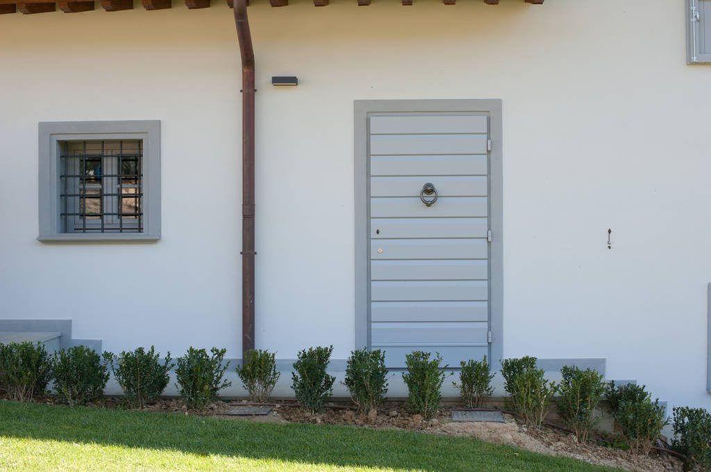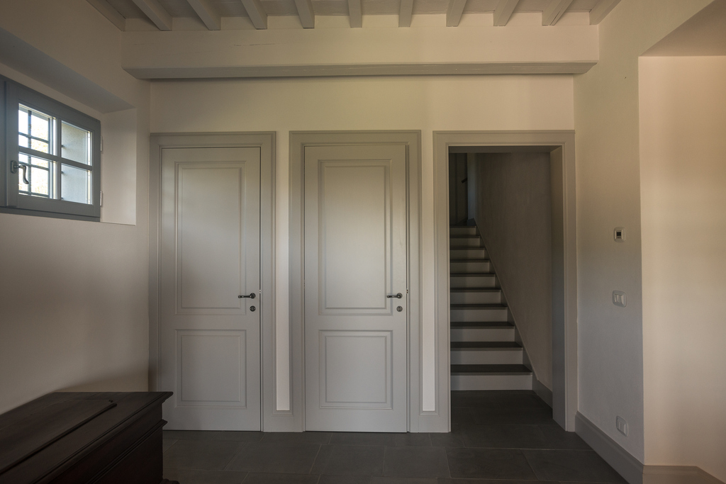 Il colore delle finestre e delle porte finestre è un grigio azzurro, ripreso dalla tradizione delle case contadine toscane del valdarno aretino e fiorentino. L'infisso in ferro con profilo gotico (grigio antracite) è stato utilizzato nella parte della casa amplata, al fine di diversificare l'intervento.