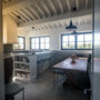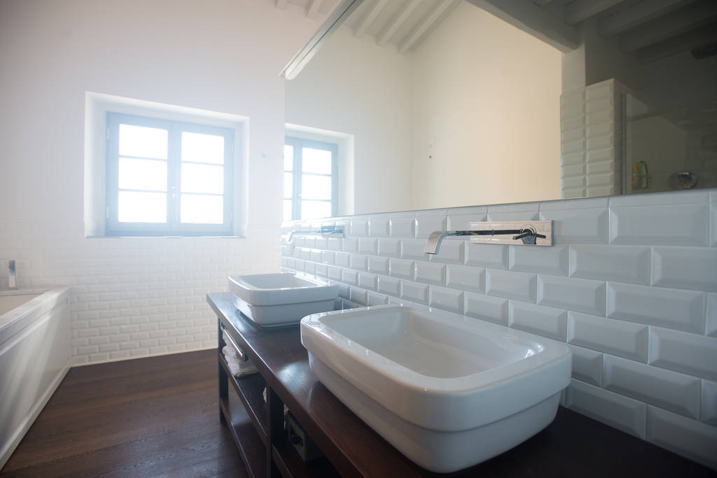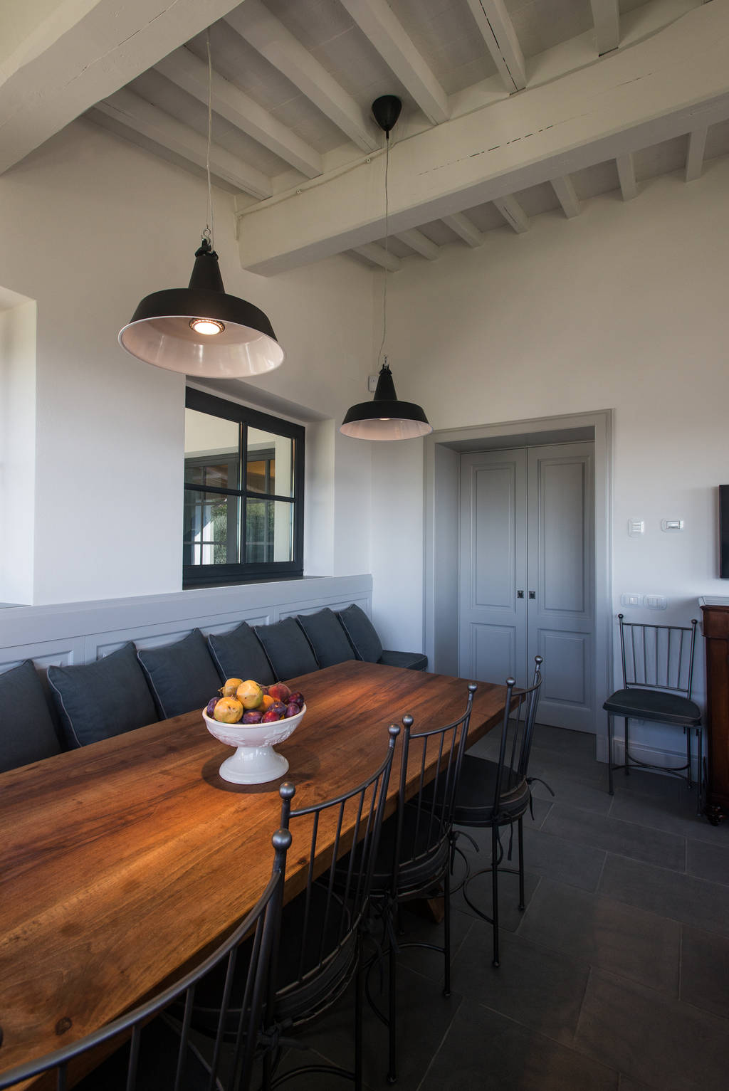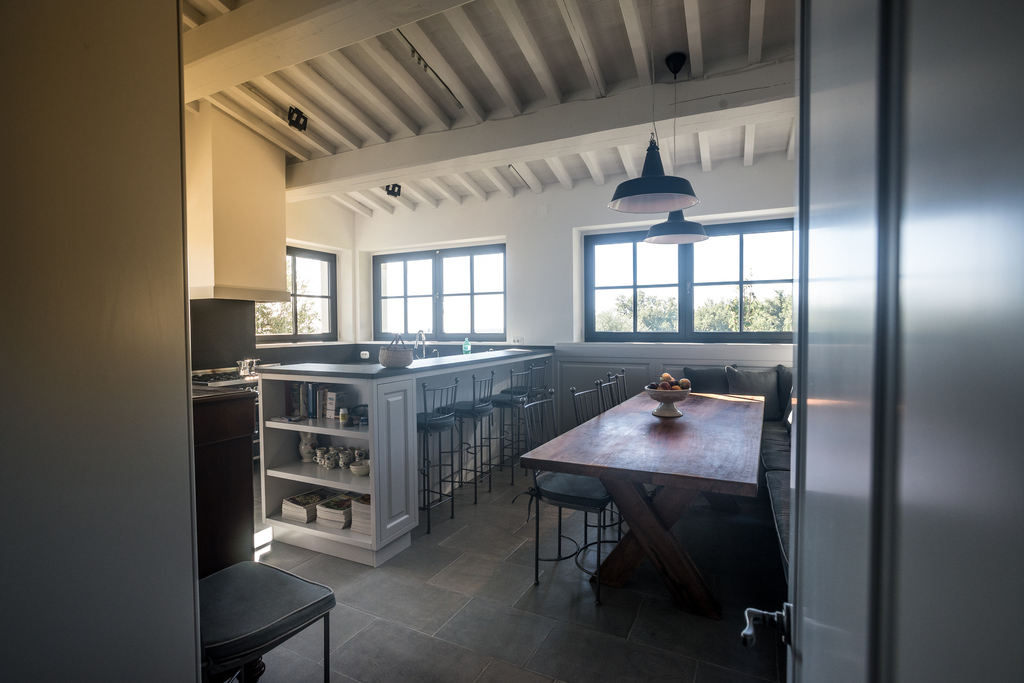 Per i pavimenti, la volontà è stata quella di utilizzare una pietra che avesse le stesse caratteristiche delle pietre di fiume che si trovano nell'Arno; la stessa pietra che veniva utilizzata per lastricare le strade e le vecchie aie delle case coloniche. La pietra grigia utilizzata è stata la pietra alberese (colombino) un materiale lapideo di natura calcarea; si tratta infatti di un calcare marnoso di estrema durezza e bellezza, tipico dei nostri luoghi.