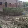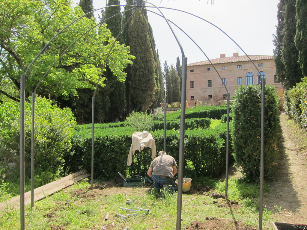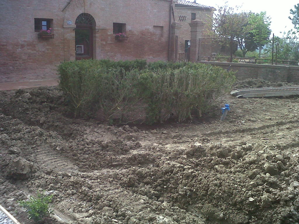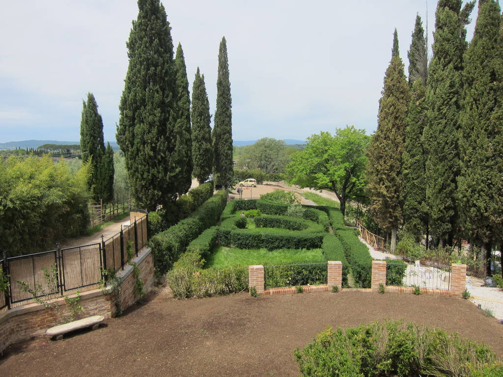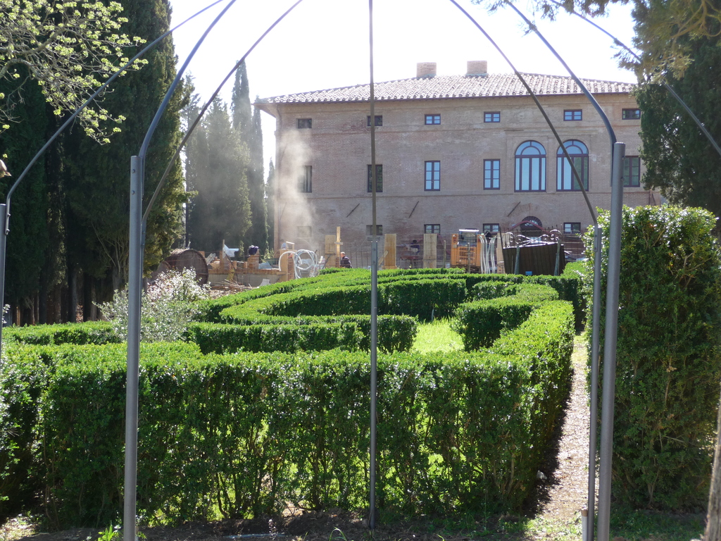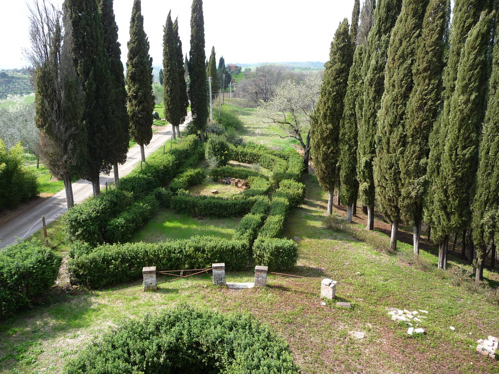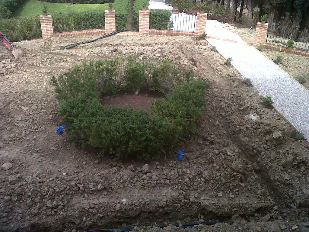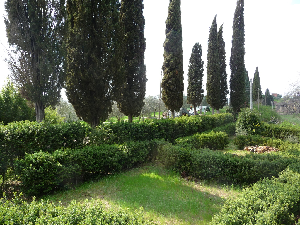 Il progetto ha provveduto a recuperare il giardino nelle sue forme e nelle sue linee essenziali. Le essenze sono state protette durante tutto il corso dei lavori. L'aiuola circolare centrale è stata tolta e ripiantata in altro luogo durante tutte le lavorazioni, per fare posto alla gru e al cantiere, alla fine dei lavori i bossi sono stati ripiantati nella stessa posizione. Sono stati recuperati i sentieri perduti sia davanti alla casa sia all'interno della cipresseta.