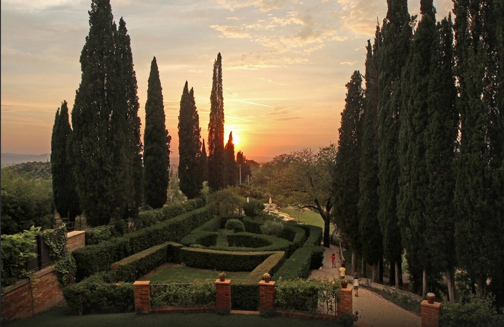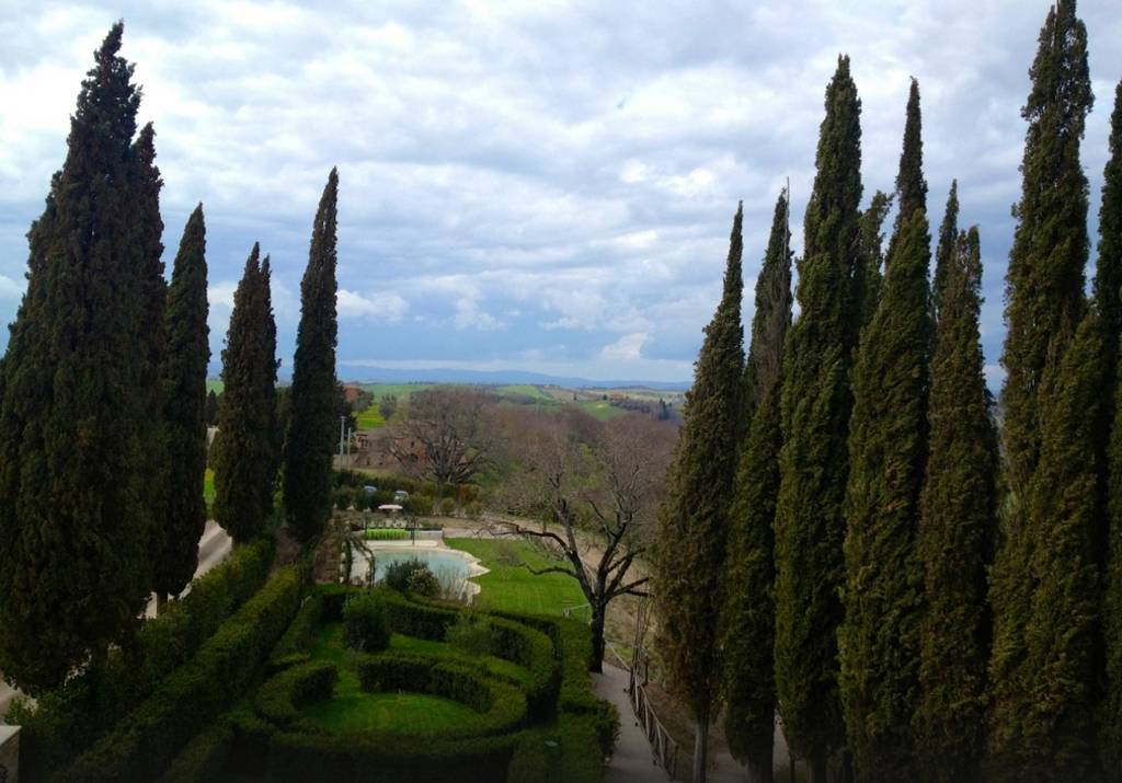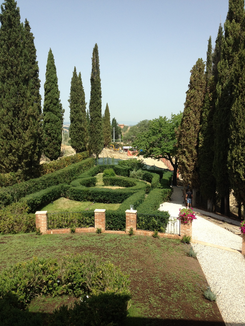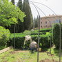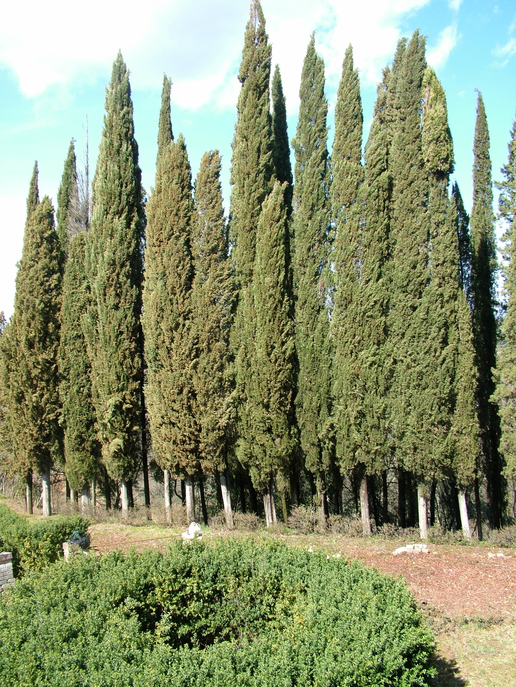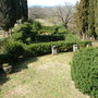 La cipresseta sul lato nord ha forma semicircolare e si adatta perfettamente alla orografia del pendio contribuendo a trattenere il terrreno che in questo punto aveva subito un'erosione con conseguente dissesto e parziale crollo delle murature della villa sul prospetto nord.