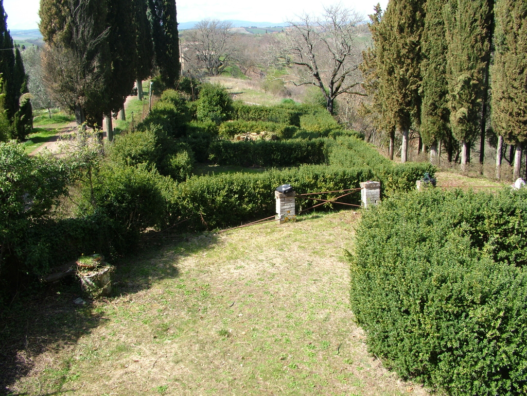 Le varie vicende storiche , familiari ed economiche hanno determinato l'abbandono e l'incuria di questo splendido giardino all'interno delle crete senesi. Il degrado ha causato in questo caso la perdità dell'integrità villa-giardino, senza la totale scomparsa dei segni distintivi del giardino antico. Nel 1995 la Soprintendenza ai Beni Architettonici e Ambientali di Siena ha dato inzio al programma di catalogazione delle aree verdi storiche , campagne indotte da un rinnovato movimento culturale per la tutela di un patrimonio, quello dei parchi e dei giardini storici, soggetto a rischio di profonde alterazioni o peggio di totale perdita. La catalogazione che costituisce pertanto un momento importante nel processo della conoscenza, ha portato al censimento, nel solo territorio senese di ben 426 giardini correlati a ville.
